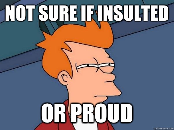 Not sure if insulted Or proud