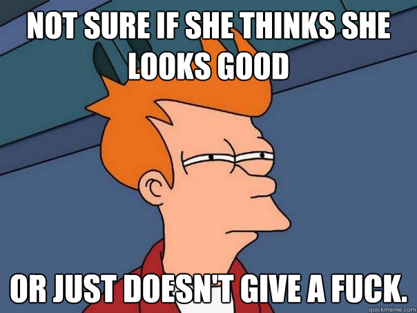 Not sure if she thinks she looks good Or just doesn't give a fuck.