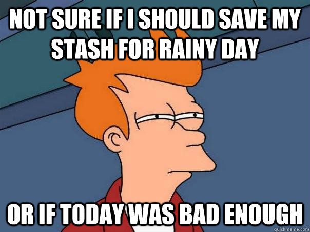 Not sure if I should save my stash for rainy day Or if today was bad enough