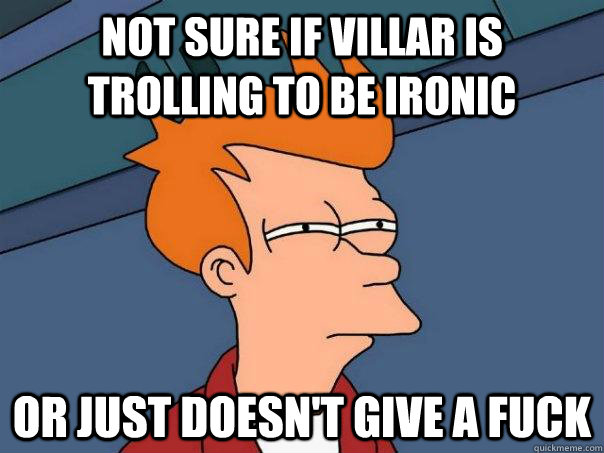 not sure if villar is trolling to be ironic or just doesn't give a fuck