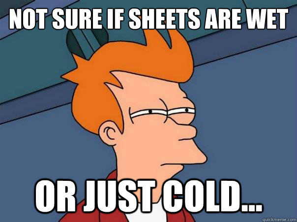 Not sure if sheets are wet or just cold...