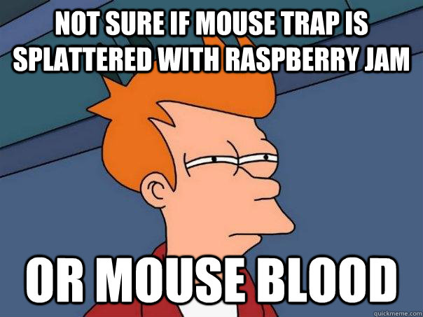 Not sure if mouse trap is splattered with raspberry jam Or mouse blood