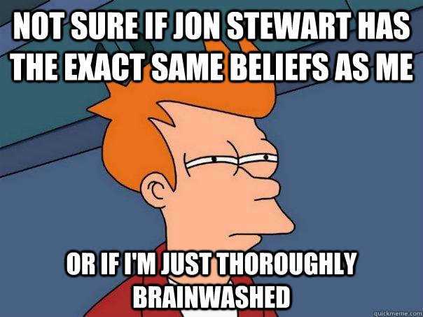 Not sure if jon stewart has the exact same beliefs as me Or if I'm just thoroughly brainwashed