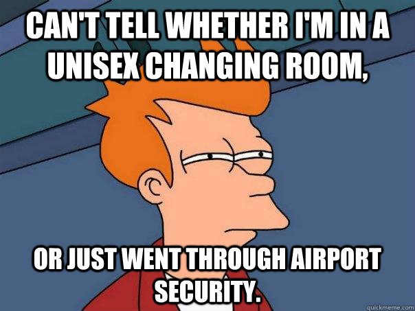 Can't tell whether I'm in a unisex changing room, or just went through airport security.