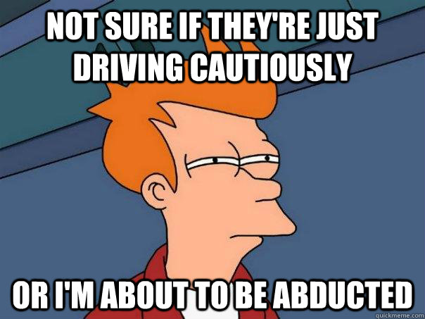 Not sure if they're just driving cautiously Or I'm about to be abducted