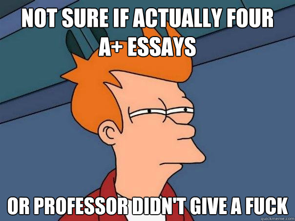 Not sure if actually four A+ essays Or professor didn't give a fuck