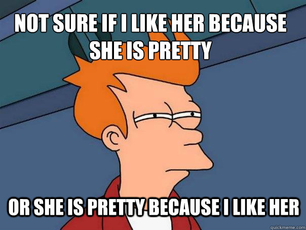 Not sure if I like her because she is pretty or she is pretty because I like her