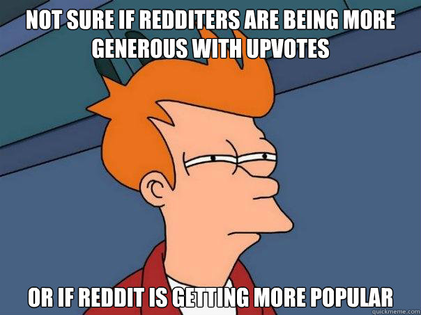 Not sure if redditers are being more generous with upvotes Or if reddit is getting more popular