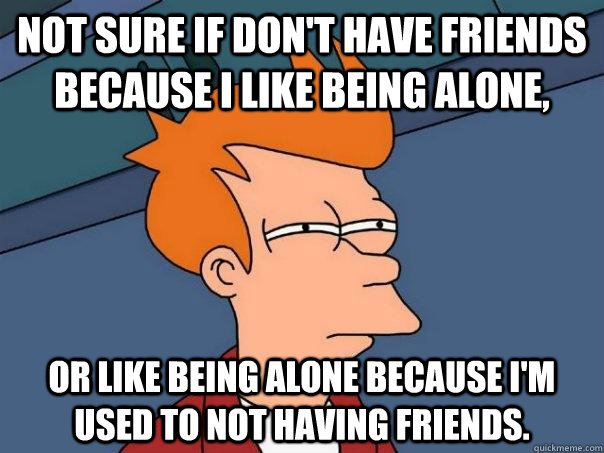 Not sure if don't have friends because I like being alone, Or like being alone because I'm used to not having friends.