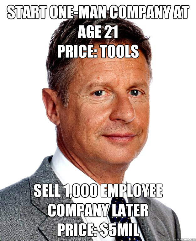 START One-man COMPANY AT AGE 21 Price: Tools Sell 1,000 employee company later price: $5mil