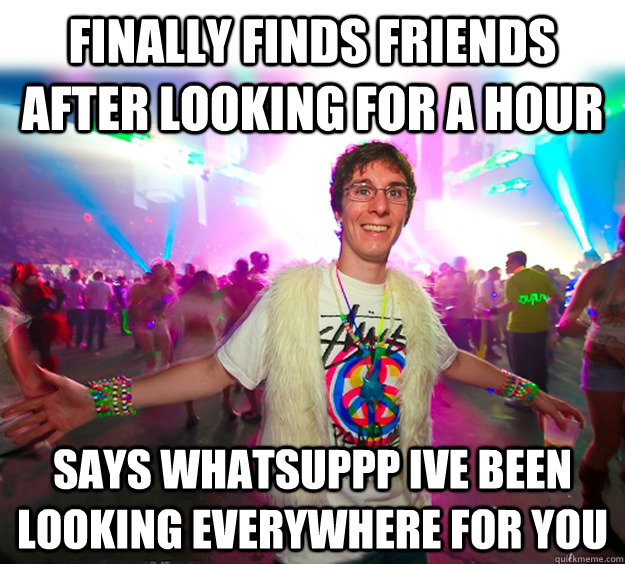 finally finds friends after looking for a hour says WHATSUPPP ive been looking everywhere for you