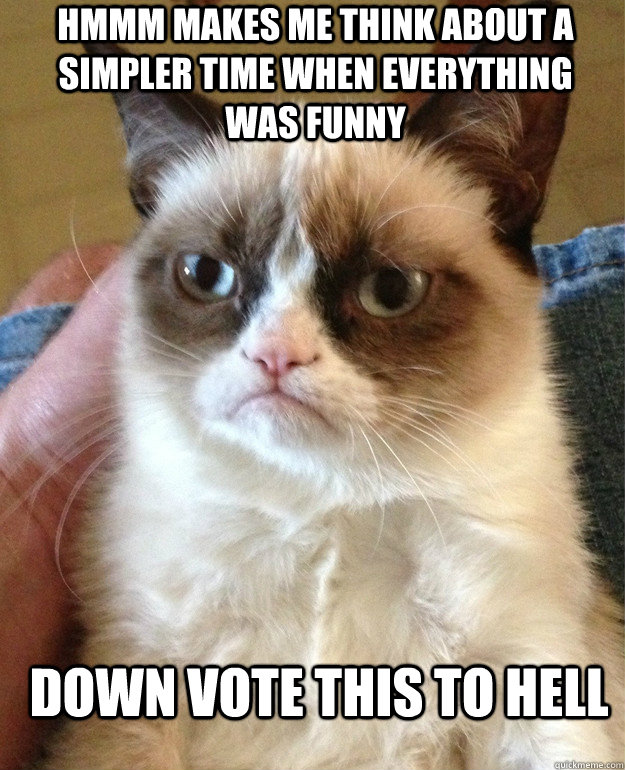 Hmmm makes me think about a simpler time when everything was funny Down vote this to hell