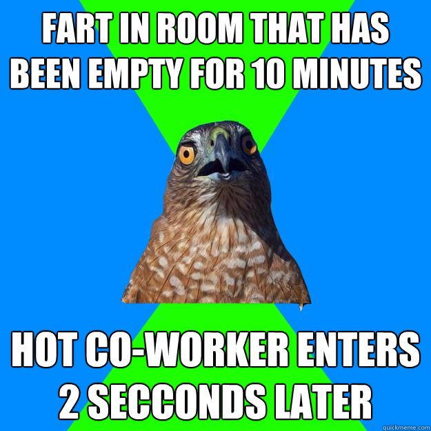 fart in room that has been empty for 10 minutes hot co-worker enters 2 secconds later