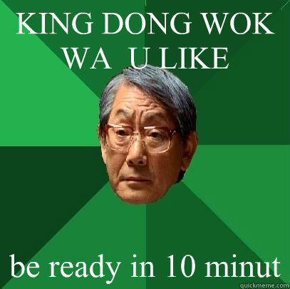 KING DONG WOK WA U LIKE be ready in 10 minut
