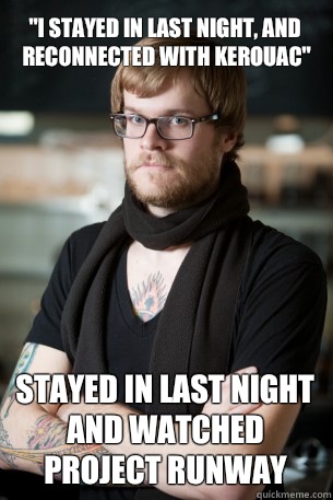 "I stayed in last night, and reconnected with Kerouac" Stayed in last night and watched project runway