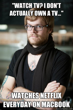 "Watch TV? I don't actually own a TV..." Watches Netflix everyday on macbook