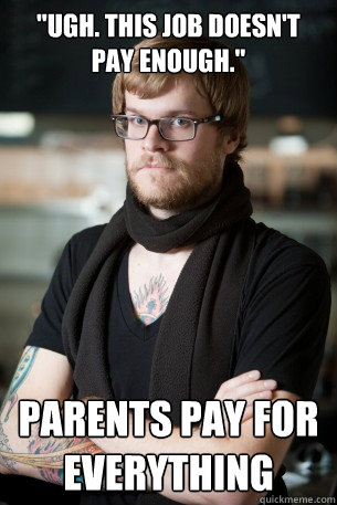 "Ugh. this job doesn't pay enough." Parents pay for everything