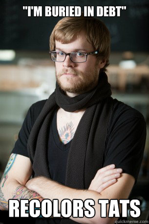 "i'm buried in debt" Recolors tats