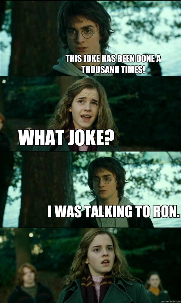 This joke has been done a thousand times! What Joke? I Was talking to Ron.