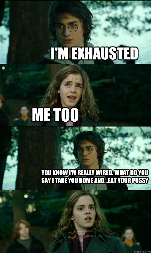 I'm exhausted Me too You know I'm really wired. What do you say I take you home and...eat your pussy