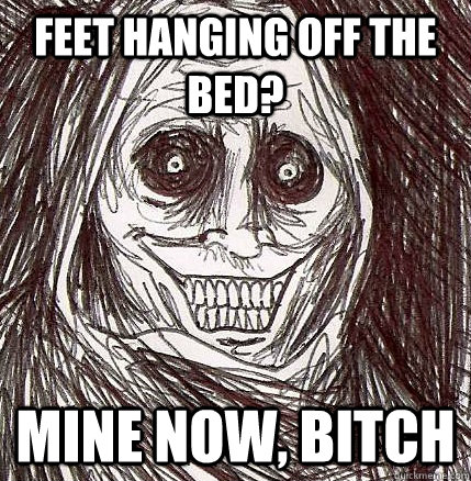 Feet hanging off the bed? Mine now, bitch