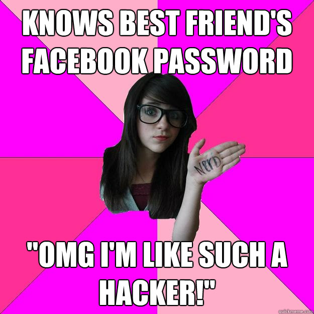 knows best friend's facebook password "omg i'm like such a hacker!"