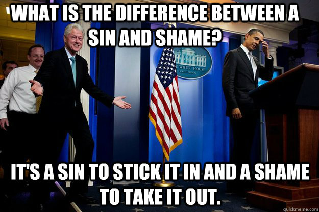 What is the difference between a sin and shame? It's a sin to stick it in and a shame to take it out.