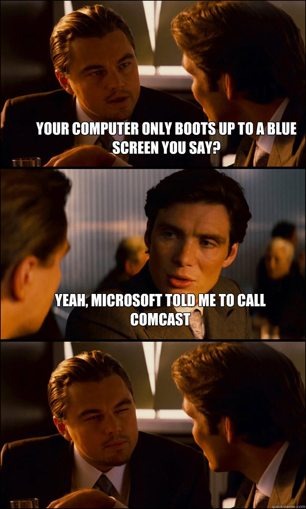 your computer only boots up to a blue screen you say? yeah, microsoft told me to call comcast