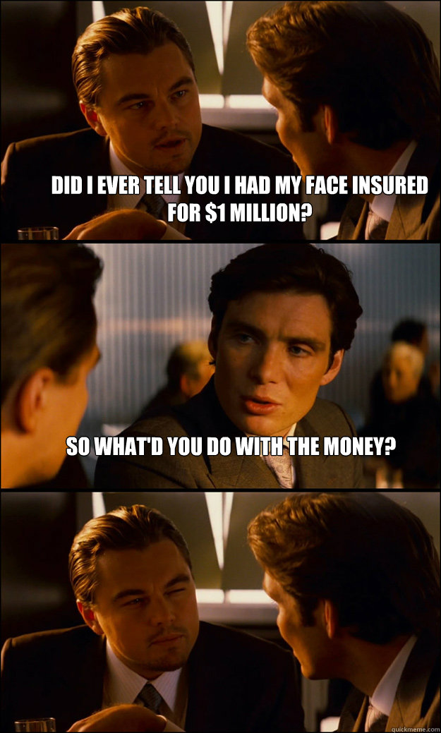 Did i ever tell you i had my face insured for $1 million? So what'd you do with the money?