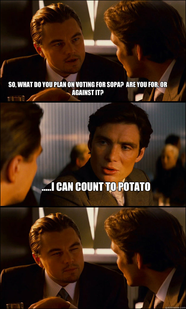so, what do you plan on voting for SOPA? are you for, or against it? .....i can count to potato