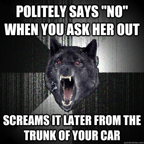 Politely says "No" when you ask her out Screams it later from the trunk of your car