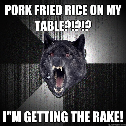 PORK FRIED RICE ON MY TABLE?!?!? I"M GETTING THE RAKE!