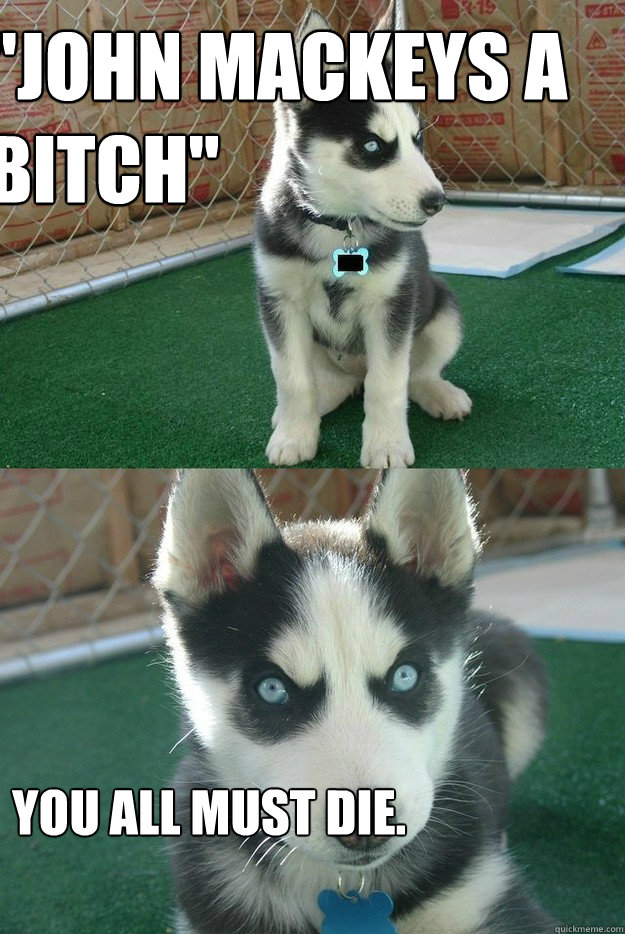 "john mackeys a bitch" YOU ALL MUST DIE.