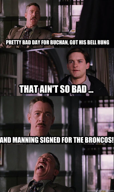 Pretty bad day for Buchan, got his bell rung That ain't so bad ... And Manning signed for the Broncos!