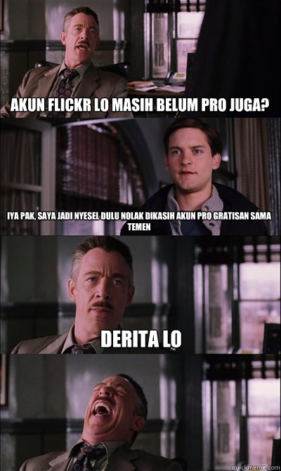 akun flickr lo masih belum pro juga? iya pak, saya jadi nyesel dulu nolak dikasih akun pro gratisan sama temen derita lo