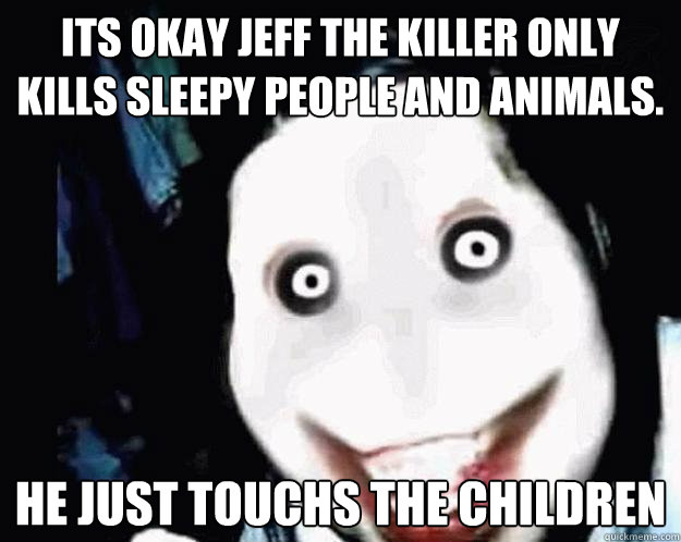 Its okay jeff the killer only kills sleepy people and animals. He just touchs the children