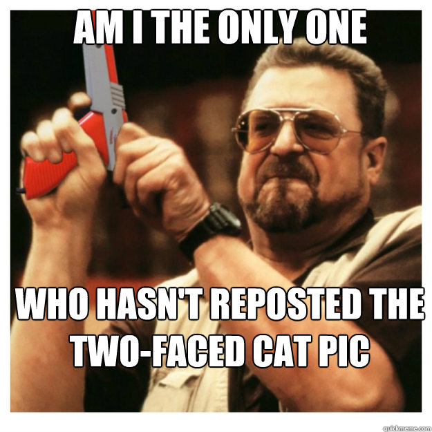 AM i the only one Who hasn't reposted the two-faced cat pic