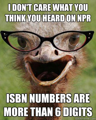 I don't care what you think you heard on NPR ISBN numbers are more than 6 digits