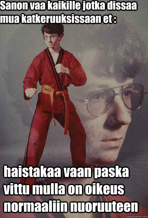 Sanon vaa kaikille jotka dissaa mua katkeruuksissaan et : haistakaa vaan paska vittu mulla on oikeus normaaliin nuoruuteen