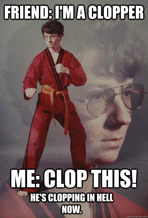 Friend: I'm a clopper Me: Clop this! He's clopping in hell now.