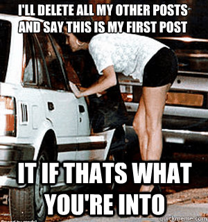 I'll delete all my other posts and say this is my first post it if thats what you're into