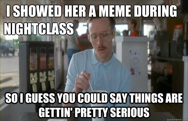 i showed her a meme during nightclass So I guess you could say things are gettin' pretty serious