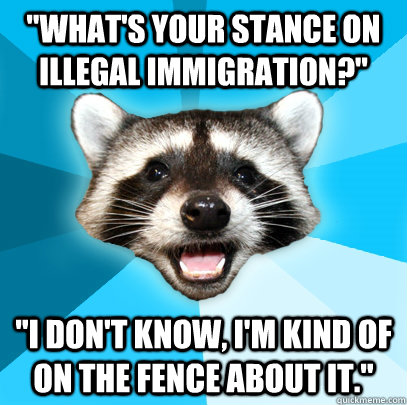 "What's your stance on illegal immigration?" "I don't know, I'm kind of on the fence about it."