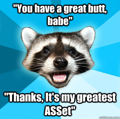 "You have a great butt, babe" "Thanks, It's my greatest ASSet"