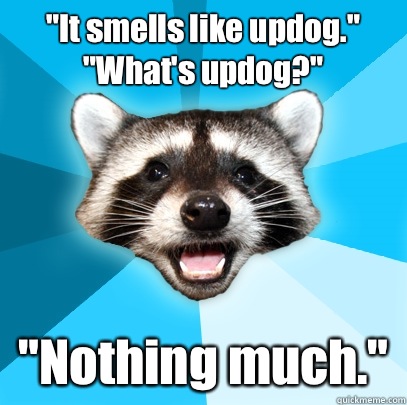 "It smells like updog." "What's updog?" "Nothing much."
