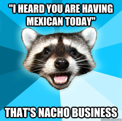 "I HEARD YOU ARE HAVING MEXICAN TODAY" THAT'S NACHO BUSINESS