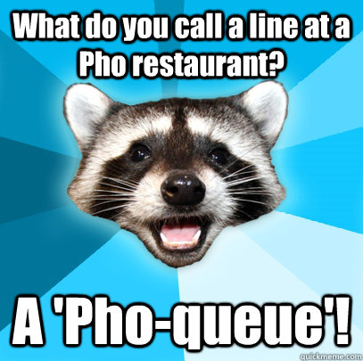 What do you call a line at a Pho restaurant? A 'Pho-queue'!