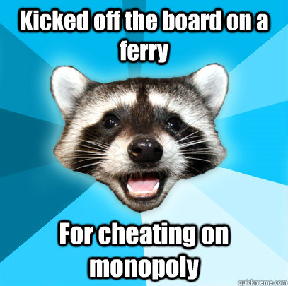 Kicked off the board on a ferry For cheating on monopoly