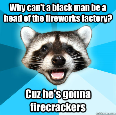 Why can't a black man be a head of the fireworks factory? Cuz he's gonna firecrackers