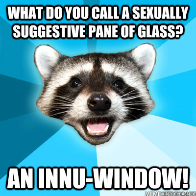 WHAT DO YOU CALL A SEXUALLY SUGGESTIVE PANE OF GLASS? AN INNU-WINDOW!